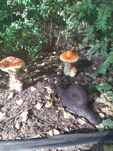 Wśród zieleni i kamieni prezentuje się idealnie.