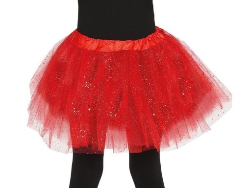 КРАСНАЯ ЮБКА ИЗ ТЮЛЯ С БЛЕСКАМИ