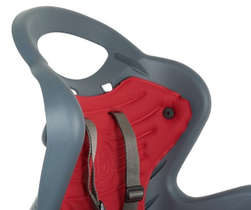 montaż na giętkim, stalowym pałąku, który doskonale amortyzuje wszelkie wstrząsy zapewniając dziecku wysoki komfort podczas wycieczek rowerowych