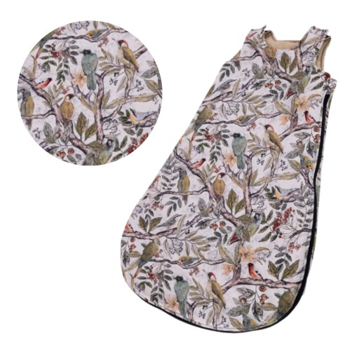 Śpiworek wykonany jest obustronnie z mięciutkiego Organicznego Jerseyu. W środku wypełniony antyalergiczną, lekką, silikonową włókniną zapewniającą ciepło i jeszcze więcej miękkości maluszkowi.