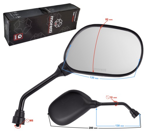 Зеркала мотилизатор черный M8 130x80mm R+R Scooter