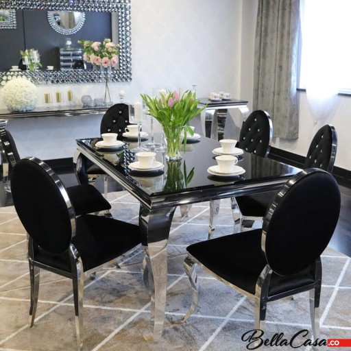 Ten wyjątkowy stół perfekcyjnie skomponuje się z eleganckimi dodatkami w stylu glamour jak chociażby z lustrami glamour. Warto również pomyśleć o uzupełnieniu naszego salonu piękną ławą, stolikiem czy konsolą należących do tej samej kolekcji mebli, kolekcji Dallas z blatem ze spieku kwarcowego.