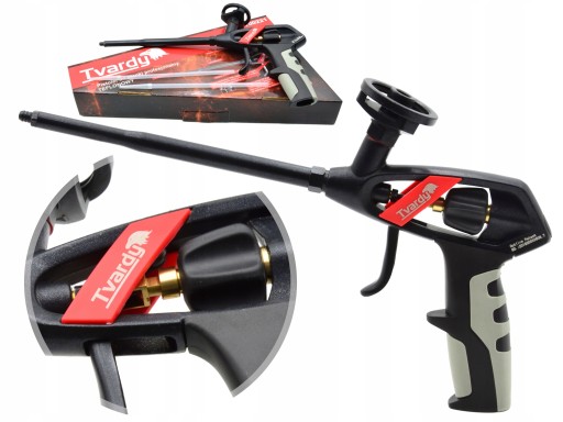 Profesjonalny pistolet teflonowy do pianki TVARDY. W zestawie dwie przedłużki i końcówki.