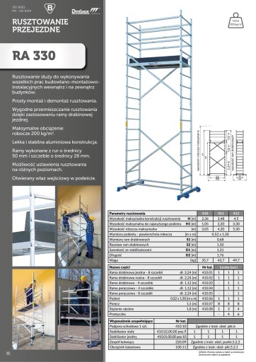Rusztowanie jezdne aluminiowe Drabex RA 330 renomowanego polskiego producenta DRABEX.