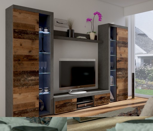 Oświetlenie do meblościanki LED w barwie białej lub niebieskiej za dopłatą.