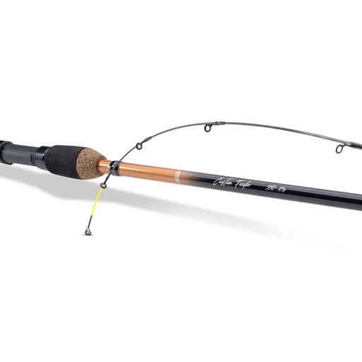 Oto właściwy sprzęt, jeśli chodzi o delikatne łowienie feederem. Wędki MS Range Custom Feeder dostępne są w trzech wersjach. Ze względu na czułą akcję model 3,30 m składa się z dwóch części plus wymienne szczytówki. Wersje 3,60 m i 3,90 m tradycyjnie składają się z trzech segmentów plus wymienne szczytówki. Blank we wszystkich modelach wykonany jest z niezwykle mocno skompresowanego włókna węglowego 30T i 40T, dzięki czemu zapewnia niezrównaną akcję, jest wyjątkowo lekki i bardzo cienki. Część dolnika jest spłaszczona, wykonany z naturalnego korka i pianki EVA zapewnia nie tylko funkcjonalne, ale i wizualne akcenty tej serii wędek.