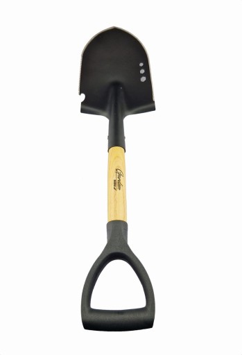 Mini saperka sprawdzi się w sytuacjach awaryjnych w czasie podróży, podczas biwaku czy podczas prac w ogrodzie. Saperka wykonana z hartowanej stali manganowej 50Mn. Krawędź została zaostrzona, a z jednej strony posiada dodatkowe ząbkowanie co pomaga kopać w glebie twardej bądź np. z dużą ilością korzeni. Saperka ma też przygotowane trzy otwory, które mogą służyć do odkręcania nakrętek czy śrub. Wygodny uchwyt typu D z wytrzymałego tworzywa został osadzony na drewnianym trzonku. Trzonek został polakierowany w celu zabezpieczenia go przed wpływem wilgoci.