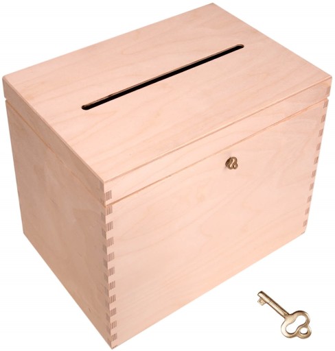 Jak wszyscy wiemy, najczęstszym prezentem dla Pary Młodej są koperty z pieniędzmi, kartkami czy losami lotto. Drewniana skrzynka na koperty będzie wspaniałym organizacyjnym rozwiązaniem do zebrania ich w jednym miejscu, gwarantującym tym samym, że żadna z nich się nie zgubi. Dodatkowo skrzynka wyposażona jest w kluczyk, co zapewni zawartości większe bezpieczeństwo. Jest nie tylko bardzo funkcjonalna, ale również prezentuje się bardzo oryginalnie i elegancko.