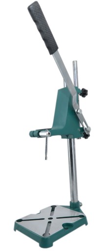 Korpus wykonany jest z aluminium, dzięki czemu całość jest lekka i wytrzymała. Obsługa zamocowanej wiertarki sprowadza się do sterowania dźwignią sprężynującą, umożliwiającą samoczynny powrót wiertarki do pozycji początkowej. Stojak ma uniwersalne mocowanie do większości wiertarek.
