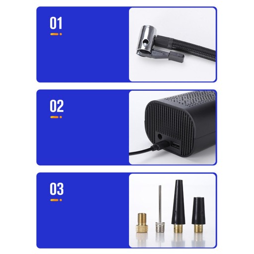Automatyczna pompka do opon: ciśnienie w oponach za jednym przyciskiem i automatycznie wyłącza się po osiągnięciu ciśnienia. Dokładny pomiar ciśnienia, wygodny do nadmuchania w dowolnym momencie. Wbudowany profesjonalny amortyzator, podwójna redukcja hałasu.