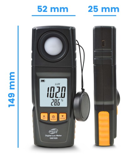 Luksomierz GM 1020 marki Benetech to narzędzie do pomiaru natężenia światła o zakresie 1-200 000 Lux . Urządzenie znajduje zastosowanie w wielu dziedzinach. Miernik może być użytkowany w przemyśle elektryczno-optycznym. Jest stosowany również do celów inspekcyjnych pomieszczeń w których pracują lub przebywają ludzie, a także przy hodowli roślin i zwierząt.
