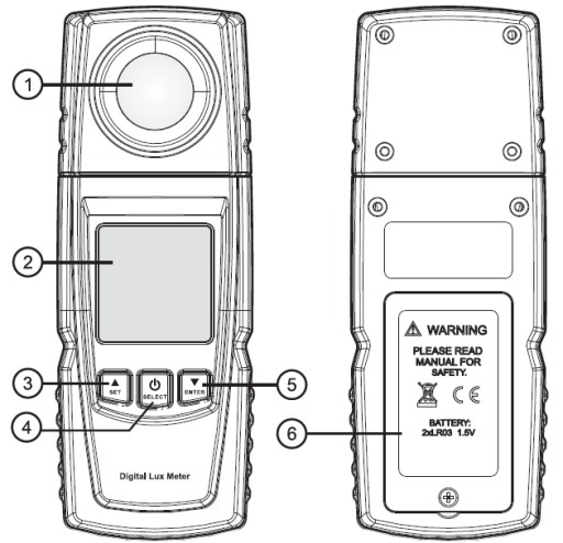 - Zakres pomiaru: 1-200 000 Lux / 1-18500 Fc,