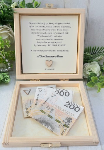 Oto pomysł na drewniane pudełeczko z personalizowanymi życzeniami.