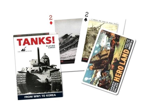 Najwyższej jakości karty do gry renomowanej firmy Ferd. Piatnik & Sohne. Na wszystkich awersach fotografie i plakaty czołgów od czasów I wojny światowej po konflikt w Korei w latach 50. Oprócz mini przewodnika w języku angielskim, pod każdym zdjęciem podpis z datą i parametrami. Talia składa się z 54 plastikowanych kart o wymiarach 63 x 88 mm i gramaturze 310. Idealna zarówno do brydża, pokera, remika jak i innych gier. Wyroby wiedeńskiej fabryki Ferd. Piatnik & Sohne od 1824 roku urzekają bogactwem wzorów i perfekcją wykonania. Jakość i tradycja!