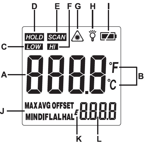 - LAL: low temperature alarm - Jeżeli wartość pomiaru osiągnie lub przekroczy próg alarmu na wyświetlaczu pojawi się ikona LOW oraz usłyszysz dźwięk BiBi,
