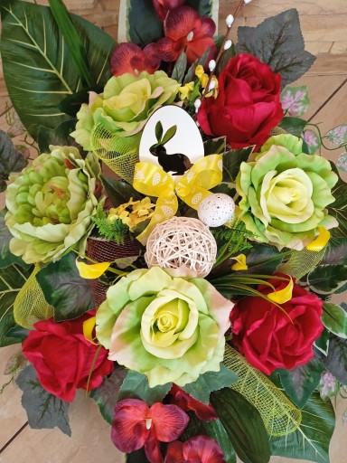 Kompozycje robione są ręcznie stąd może być rozbieżność do ok. 5cm. Ustawienia monitora może wpłynąć na nasycenie koloru.