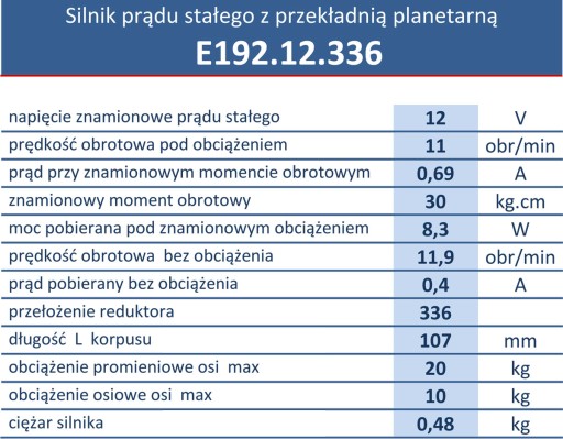 Silnik szczotkowy prądu stałego z przekładnią planetarną typ E192.12.336