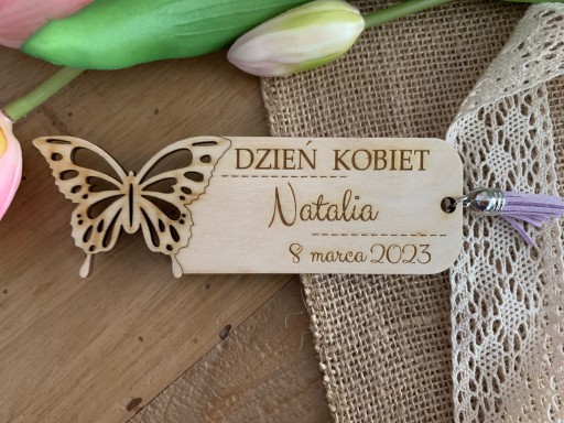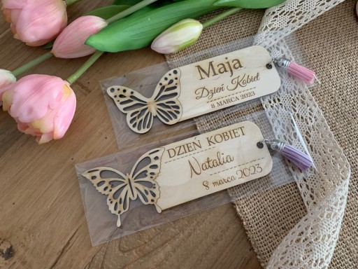 Przedmiotem sprzedaży jest personalizowana drewniana zakładka do książki, która świetnie sprawdzi się jako upominek na Dzień Kobiet. Jest to także doskonały pomysł na prezent dla koleżanek z klasy, przedszkola, pracy.