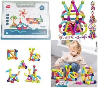 58 elementów pozwoli wyczarować kolorowe budowle. Bezpieczna, a zarazem kreatywna zabawa z magnetycznymi klockami pozwoli rozwijać małą motorykę i wyobraźnię przestrzenną!