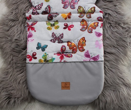 Wzory: kolorowe motylki na szarym tle + podnóżek jasny szary
