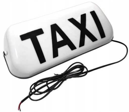 Lampa kogut z napisem TAXI w kolorze białym mocowana na 2 prostokątne magnesy w osłonie gumowej