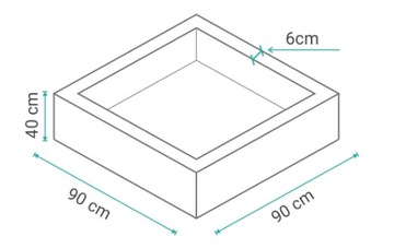 Wymiary: 90 x 90 x 40[cm], Grubość ścianki: 6 cm, Grubość dna: 2 cm