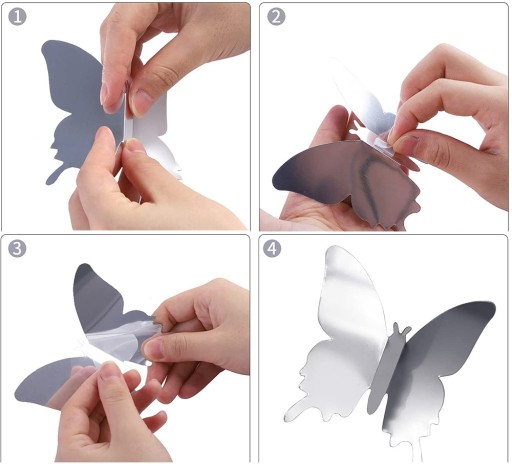 Piękne lustrzane motyle w kolorze srebrnym - 12 sztuk w komplecie.