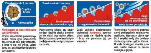 Unikalna opatentowana technologia Nanomeric przywiera do powierzchni, tworząc niewidzialną tarczę, chroniącą lakier przed wodą, wnikaniem brudu oraz szkodliwym promieniowaniem UV. Dzięki idealnie gładkiej powierzchni mycie samochodu sprowadza się właściwie do jego spłukania i przetarcia gąbką z wodą.