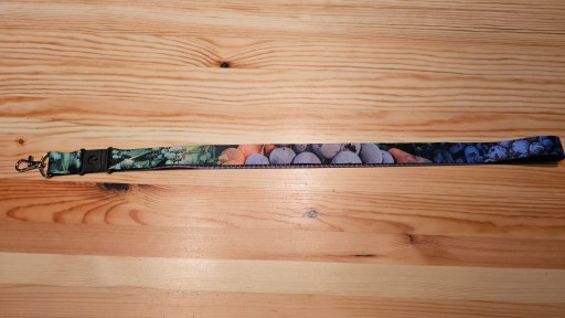 Smycz dwustronna kolorowa 25 mm z karabińczykiem i złączką bezpieczeństwa.