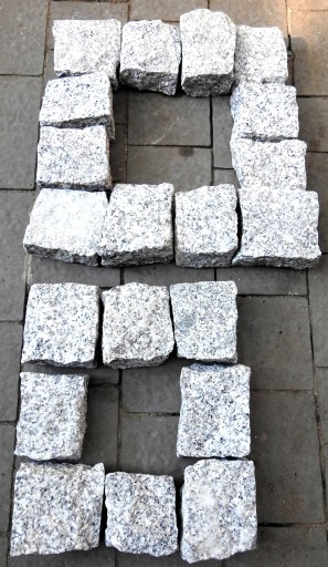 Kostka ma wymiary w przedziale mniej więcej 8/11 x 5 cm , jest to materiał naturalny, kostki różnią się od siebie kształtem i wymiarem co dodatkowo podkreśla ich naturalne pochodzenie .