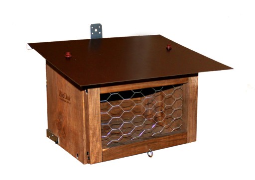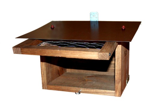 - z przodu są drzwiczki na zawiasach, z siatką chroniącą gniazda przed ptakami owadożernymi i gryzoniami,