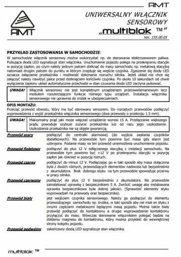 Uniwersalny włącznik sensorowy , blokada zapłonu - MULTIBLOK ( oryginalny ) + GRATIS przycisk do rozbrajania z przewodem .