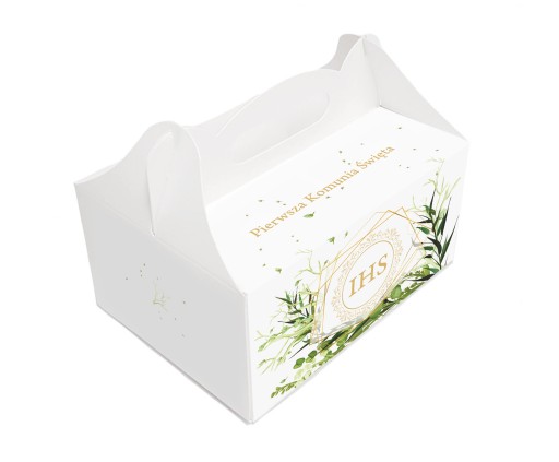 - zgrabna rączka ułatwia transport i wręczanie pudełek gościom
