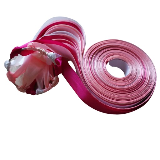 Ring oczepinowy składa się z 24 wstążek o długości 2,5m. Kolorystyka jak na zdjęciu. Wykonany na sztywnej obręczy o średnicy 8cm .