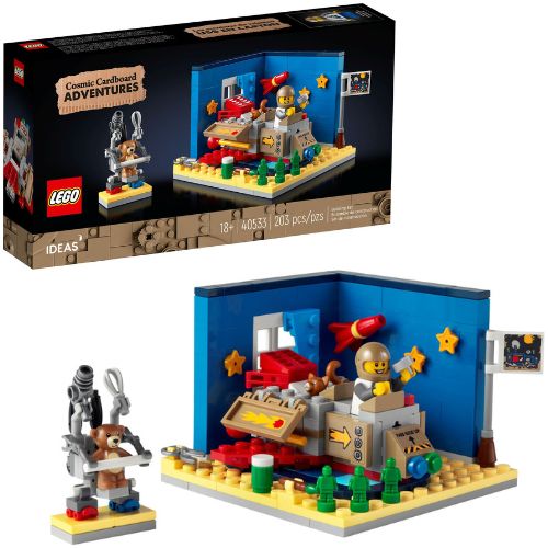 - Kosmiczna wyprawa z domowego zacisza — Zestaw Przygody statku USS Cardboard (40533) pozwoli Ci zbudować klockową wersję dekoracyjnej rakiety z kartonu i ponownie przeżyć przygody z czasów dzieciństwa