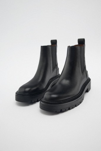 КОЖАНЫЕ БОТИНКИ ZARA НА ТОЛСТОЙ ПОДОШВЕ, ЧЕРНЫЕ 38