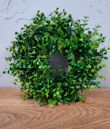 Wianek pleciony ze sztucznych, roślinnych gałązek. Wianek, który można użyć do różnych kompozycji a także do świecy.