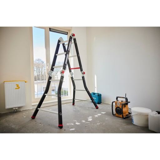 VARITREX-PROF 4X3 TO PROFESJONALNA WIELOFUNKCYJNA, PRZEGUBOWA DRABINA NADAJĄCA SIĘ DO INTESYWNEGO UŻYTKU.