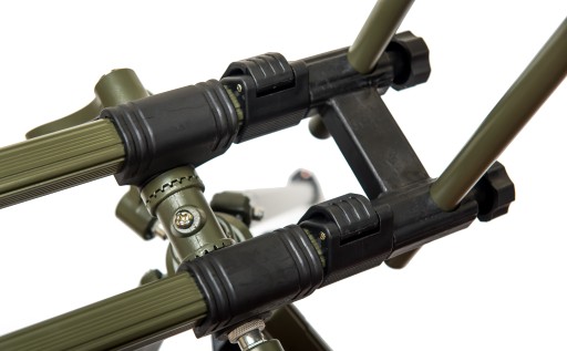 - Stanowisko karpiowe na 3 wędki. W pełni regulowane, praktyczne, sztywne, można ustawiać na terenie płaskim jak i pochyłym. Trzy teleskopowe nogi zapewniają dużą stabilność oraz wiele możliwości ustawień.
