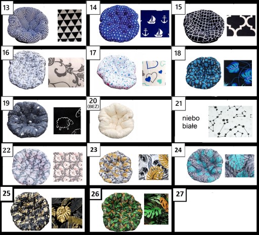 - Poszycie wkładów poduszek wykonane z bawełny lub microfibry a kolor dobierany losowo.