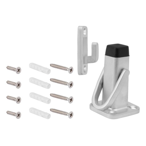 Ładny ogranicznik do drzwi który zatrzymuje i hamuje drzwi wewnątrz i na zewnątrz pomieszczeń. Wykonano go ze stopu cynkowego i wyposażono w gumową osłonę. Wkręty montażowe w zestawie.