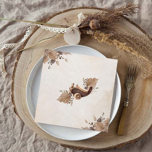 - papierowe serwetki w delikatnych beżowo-brązowych odcieniach