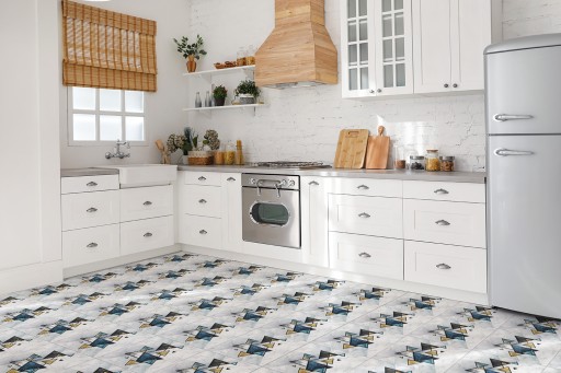 - Przed przyklejeniem zalecamy rozłożyć płytki na podłodze i dopasować wzór.