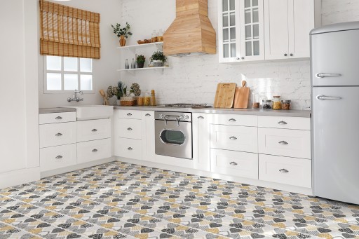 - Przed przyklejeniem zalecamy rozłożyć płytki na podłodze i dopasować wzór.
