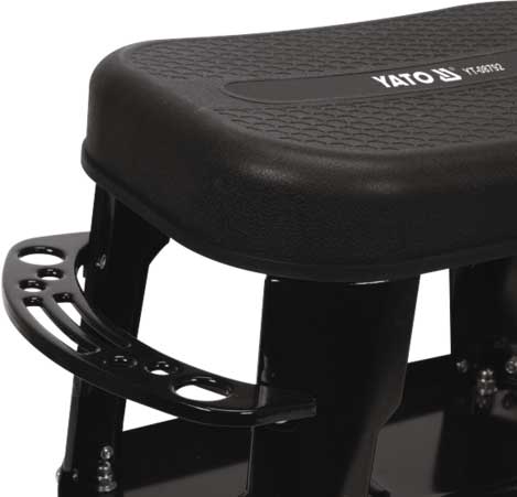 Taboret marki YATO, z łożyskowanymi kółkami, zapewni wygodę podczas prac warsztatowych.