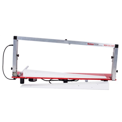 Maszyna do cięcia styropianu MDS 22/107 wyposażona jest w śruby zaciskowe prowadnicy umożliwiające blokadę ruchomego ramienia na żądanej wysokości, w zakresie między 0 a 22 cm ta funkcja pozwala na ścinanie płyt z grubości np. z 12 cm płyty dociąć płyty o grubości np. 5cm i 7 cm. Budowa urządzenia pozwala na ścinanie płyty z klina (np. na dachy, tarasy itp.) do 8 cm różnicy na długości płyty ( np. z jednej strony 8 cm, a z drugiej 16 cm grubości). Występujący w naszej maszynie włącznik chwilowy zabezpiecza drut tnący przed szybkim przepaleniem i zwiększa bezpieczeństwo podczas pracy.
