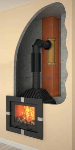 Wkładka do ściany- Osadzana w ścianie – pozwala na przyłączenie rury do komina murowanego (dwuścienna)