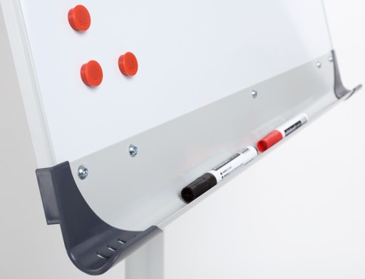 Tablica suchościeralna o właściwościach magnetycznych. Konstrukcja popielata z eleganckimi grafitowymi wykończeniami. Rama aluminiowa zapewnia stabilizację oraz podnosi estetykę produktu. Tablica ma stały kąt nachylenia wynoszący 15°. Blok zawieszany jest na uchwytach. Stojak tablicy posiada możliwość regulacji wysokości od 175 do 195 cm. Podstawę wyposażono w kółka z systemem blokowania, zapewniające stabilność produktu i ułatwiające jego przemieszczanie. Istnieje możliwość zawieszenia bloku o formacie A1 i EURO, poprzez odpowiednie ustawienie rozstawu haków. Dodatkowe 2 aluminiowe ramiona, do zawieszenia arkuszy papieru.