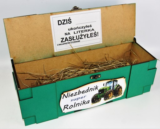 - Wewnątrz znajduję się specjalna dedykacja do wypisania oraz sianko.