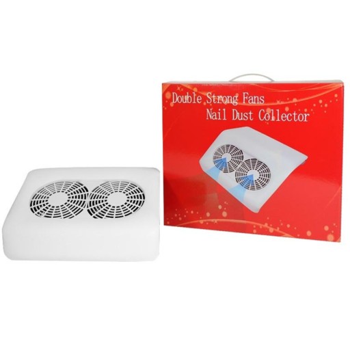 Pochłaniacz pyłu wyposażony w dwa wiatraki jest niezbędnym urządzeniem w gabinetach kosmetycznych podczas pracy stylistek i stylistów paznokci. Unikalny kształt umożliwia przyjemną pracę. Jest lekki i stabilny. Bardzo wygodny, wydajny oraz łatwy w obsłudze. Idealny również jako podstawka pod dłoń. Obity przyjemną w dotyku i łatwą w utrzymaniu czystości eko-skórą. (Czyść przedmiot za pomocą środków niezawierających nafty, alkoholu, amoniaku, stosowanie środków żrących może spowodować przebarwienia i przetarcia.) Posiada w zestawie trzy worki na pył mocno tkane, dzięki którym pył nie wydostaje się na zewnątrz. Tym samym chroni klienta i stylistkę przed szkodliwym pyłem, który unosi się podczas zabiegu.